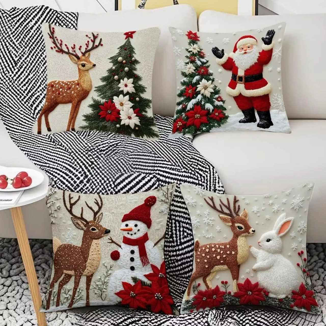 Моментално създайте топъл коледен дух без много подготовка. Просто сложете калъфките върху съществуващите възглавници и диванът ще оживее с празнични мотиви. Създайте уютен кът за социализиране, снимки и филмови вечери без много пренареждане.