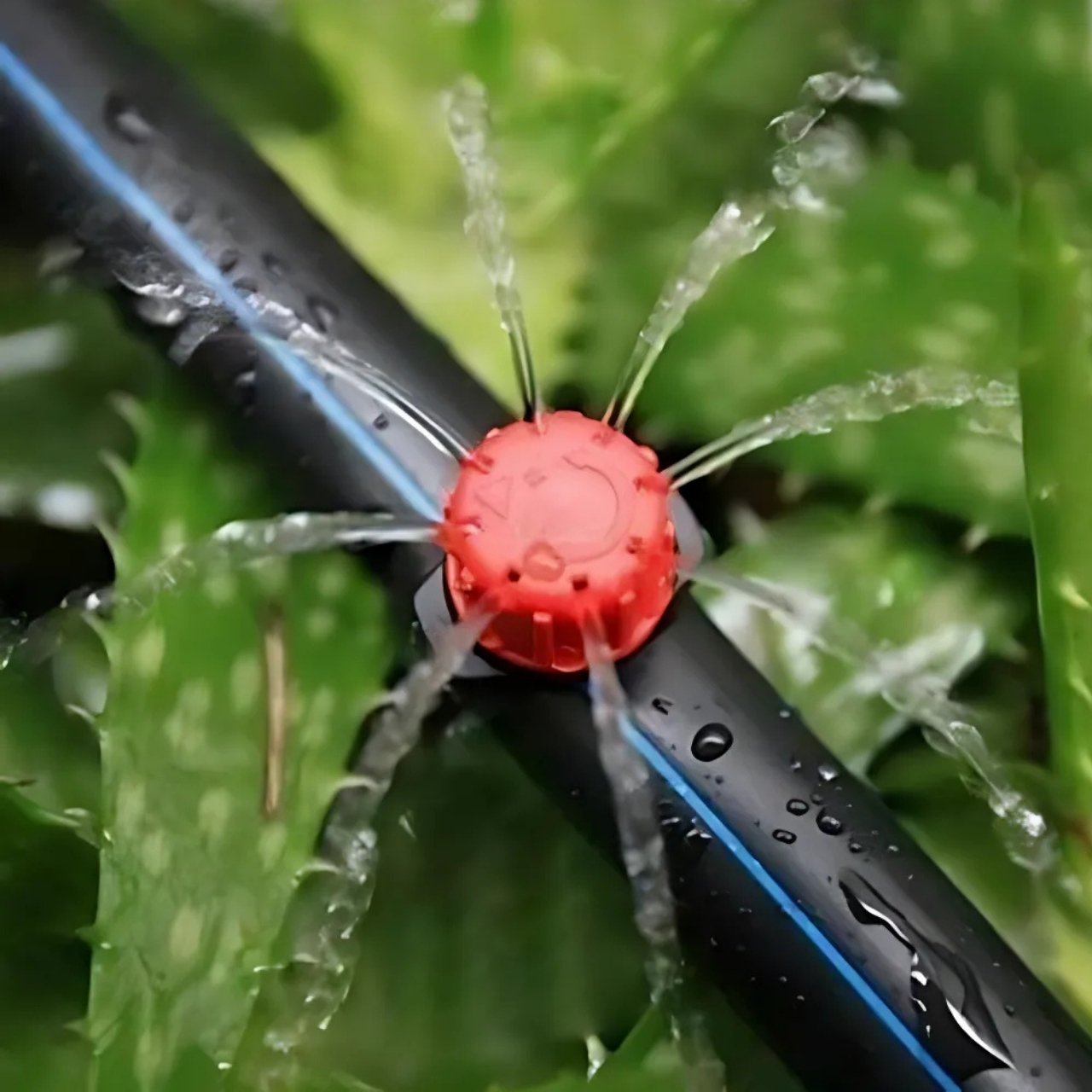 Комплектът включва пръскачки, които можете лесно да инсталирате директно в маркуча. Създайте отвор в маркуча на желаното място, като натиснете и здраво вмъкнете всяка пръскачка в него, така че да стои сигурно на място. Пръскачката има въртяща се глава, която позволява пълно регулиране на дебита - чрез въртене можете да регулирате количеството вода, което получава всяко растение. Пръскачките също имат самопочистваща система, която предотвратява запушването и 8 малки отвора, които осигуряват равномерно разпределение на водата. Системата е подходяща за използване в градината, в оранжерии, на ферми, за цветни лехи или саксийни растения. Може да се използва за разсади, зеленчуци, плодове и декоративни растения. При необходимост просто изключете системата или я активирайте отново, като завъртите дюзата изцяло в една или друга посока. За оптимална работа на системата осигурете достатъчно водно налягане и редовно проверявайте дали отворите не са запушени с почвени частици. |