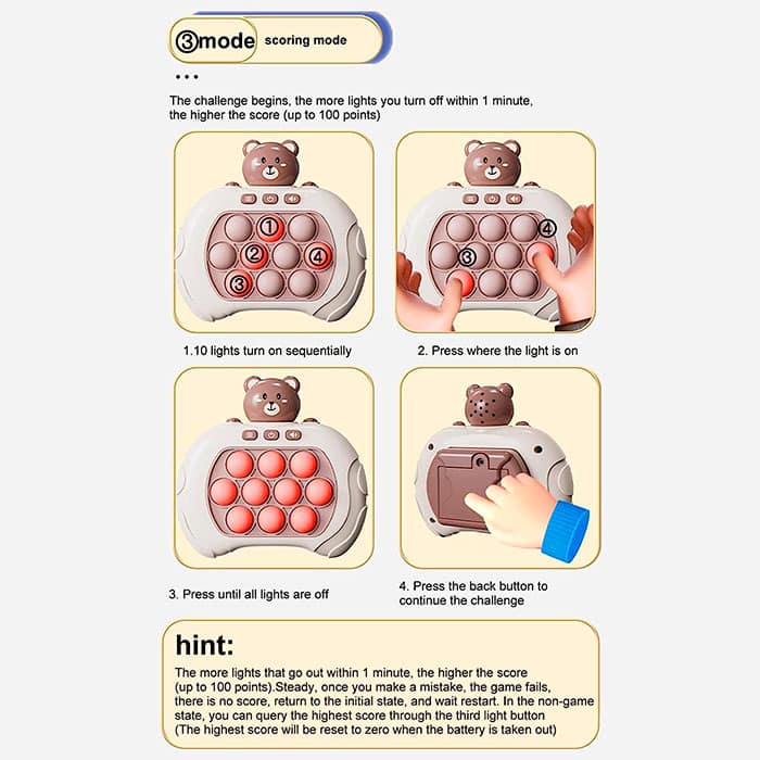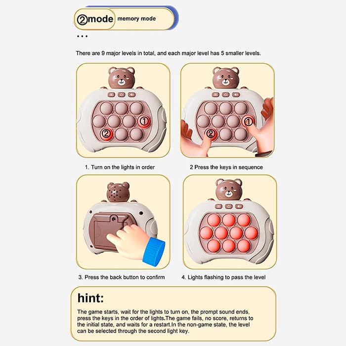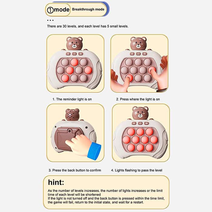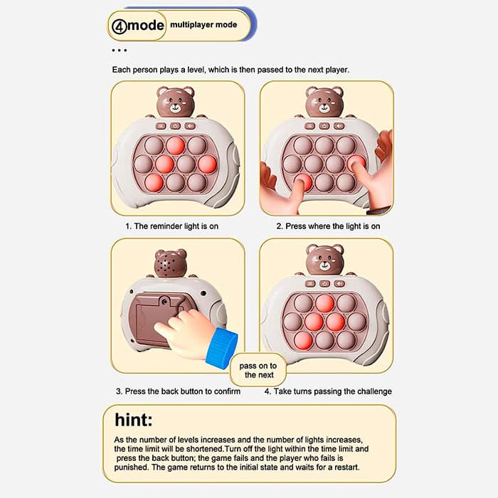 Дидактична играчка, която ще забавлява детето ви за дълго време! Играчката е идеалният избор за кратко време за игра у дома или по време на по-дълги пътувания! Играчката FastFingers има 4 различни режима на игра и ви позволява да развивате моториката и мисловните умения на вашето дете!