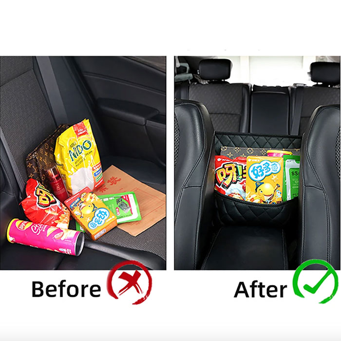 Стилният и функционален органайзер за кола може лесно да бъде поставен между седалките на водача и пътника за съхранение на закуски, напитки, портфейл, мобилен телефон и т.н.