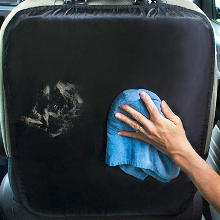 NoKickPad ефективно защитава гърба на седалките от мръсотия и отпечатъци от обувки.