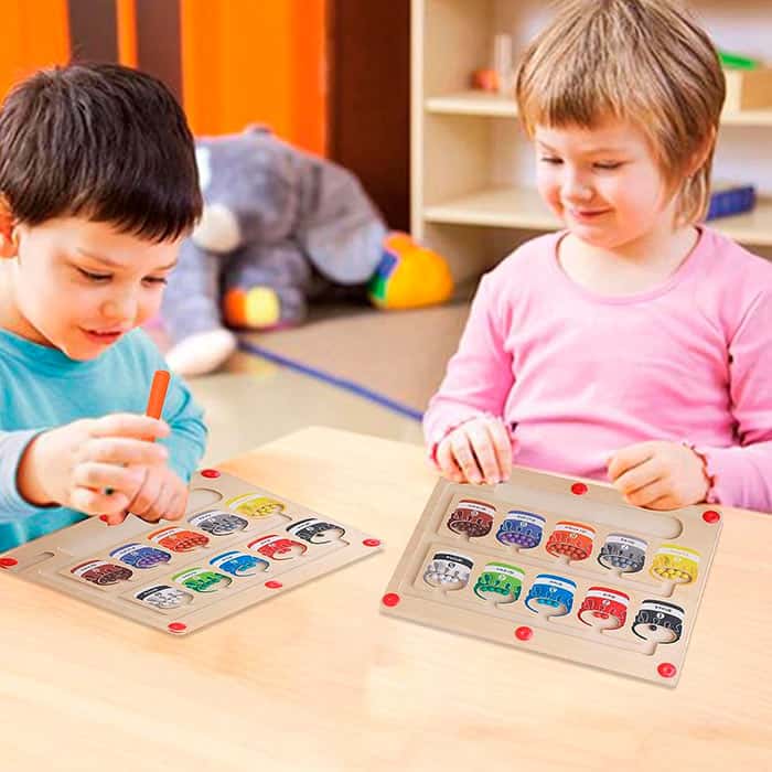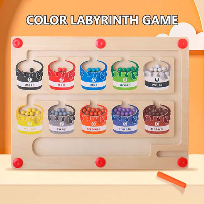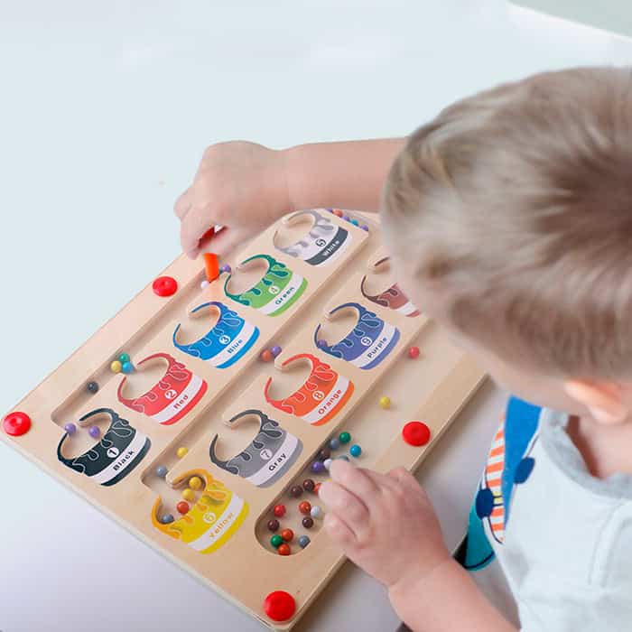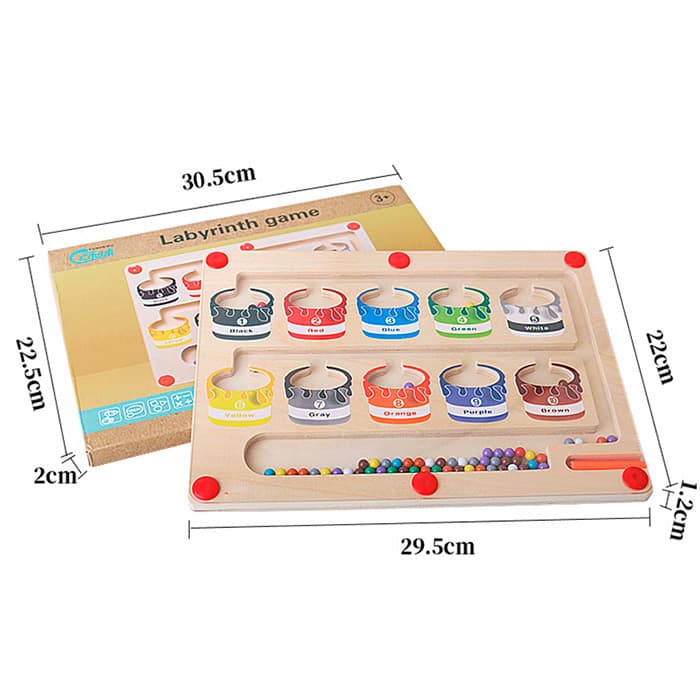 Магнитната образователна играчка има стик, с помощта на който детето подрежда цветните топчета в правилните полета!
